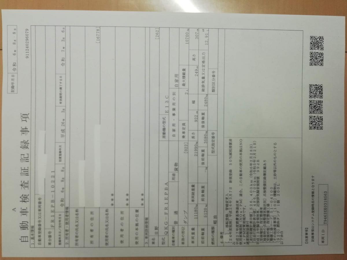 | 型 式 | QKG-FR1EPBA | 車台番号 | FR1EPB-1**** | ||||||||||||