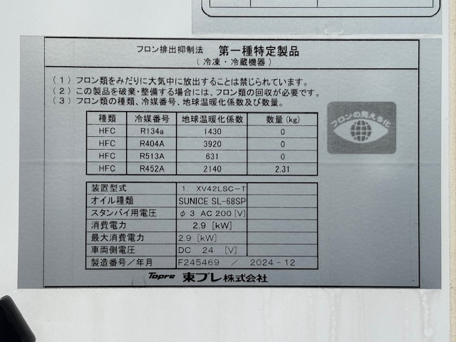 | 形状詳細 | 冷凍車 | 積載量 | 2,550 kg | ||||||||||||