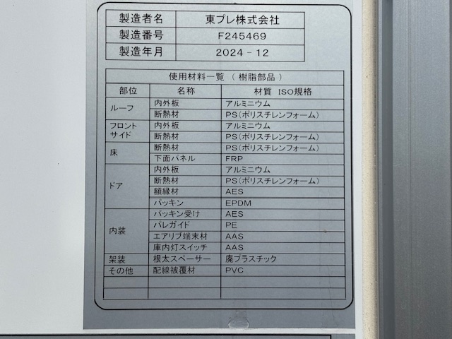 東プレ XV42LSC-T -30℃設定 2時間で-11℃確認済(6月測定) スタンバイ付 床形状:アルミキーストン S/D付(幅1150mm×高1980mm) ラッシング2段 ジョロダーレール付