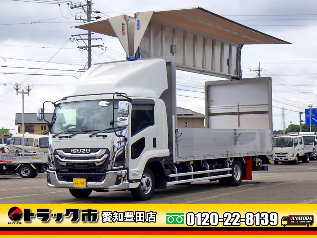 ☆フルハーフ純正架装アルミウイング☆F−CARGO☆フルゲートリフター☆オートターン跳ね上げ式パワーゲート☆昇降1000kg☆620×ワイド/ベッド☆後輪エアサス☆荷台床竹製デッキ☆ラッシングレール2段☆荷台引出フック5対☆LEDヘッド/LEDフォグ☆メッキパーツ/エアディフレクター☆衝突軽減ブレーキ/車線逸脱警報☆交差点警報/車間距離警報☆坂道発進補助装置/ETC☆バックカメラ☆最大積載量2350kg/2.35t/2.35トン☆車両総重量7960kg