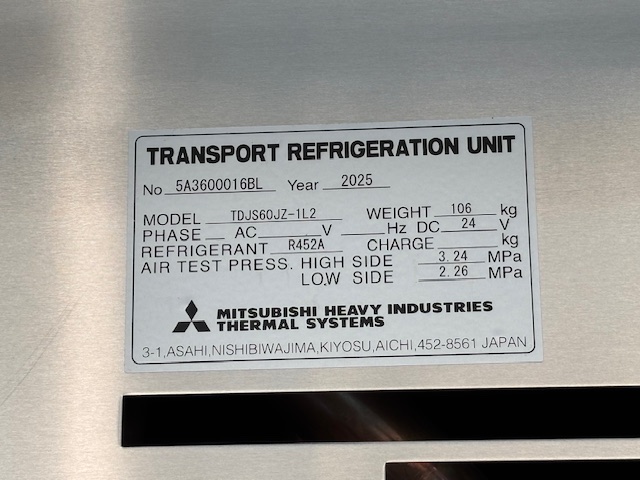 菱重 TDJS60JZ-1L2 -30℃設定 3時間で-11.5℃確認済(8月測定) 床形状:アルミアンチスリップ S/D付(幅1300mm×高2170mm) ラッシング2段