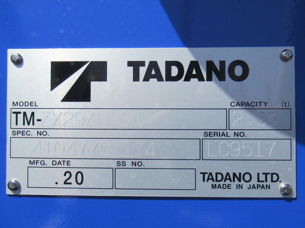| 形状詳細 | クレーン付カーゴ | 積載量 | 3,000 kg | ||||||||||||