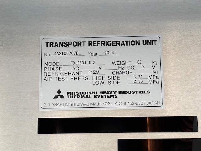 菱重 TDJS50J-1L2 -30℃設定 3時間で-10.6℃確認済(8月測定) 床形状:アルミアンチスリップ S/D付(幅1300mm×高2170mm) ラッシング2段