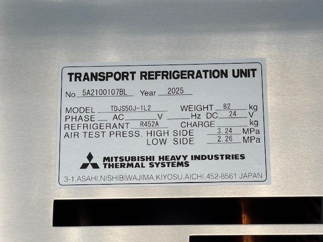 菱重 TDJS50J-1L2 -30℃設定 3時間で-14.3℃確認済(9月測定) 床形状:アルミアンチスリップ S/D付(幅1300mm×幅2170mm) ラッシング2段