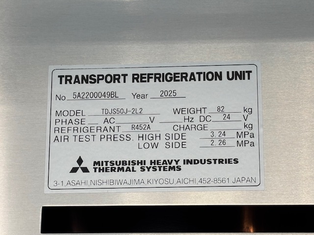 菱重 TDJS50J-2L2 -30℃設定 3時間で-16.3℃確認済(10月測定) スタンバイ付 床形状:アルミキーストン S/D付(幅1300mm×高2140mm) ラッシング2段