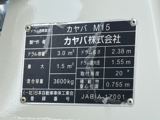 | 形状詳細 | ミキサー | 積載量 | 3,470 kg | ||||||||||||