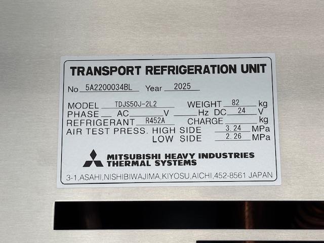 菱重 TDJS50J-2L2 -35℃設定 3時間で-16.6℃確認済(10月測定) スタンバイ付 床形状:アルミキーストン S/D付(幅1300mm×高2140mm) ラッシング2段