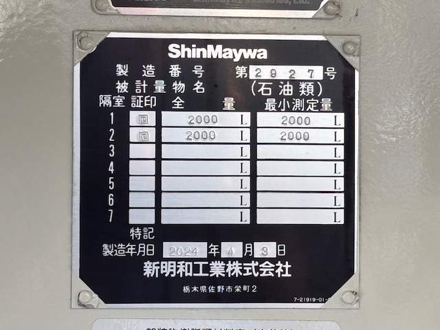 | 形状詳細 | タンクローリー | 積載量 | 3,720 kg | ||||||||||||