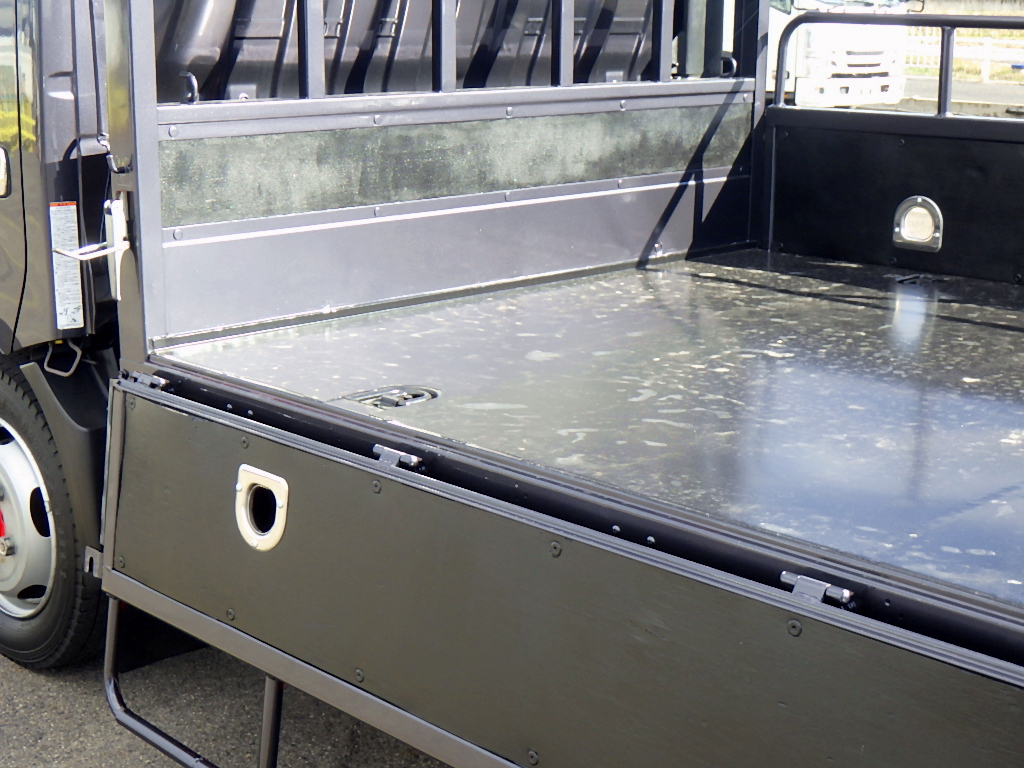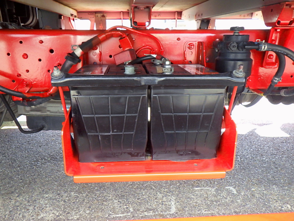 ★床鉄板加工/あおり欄干加工/ステンロープ通し穴3対/床埋込フック3対 ★フレーム赤塗装/メッキパーツ/横滑防止装置/左パワーミラー ★左右天井コンソール/純正ラジオ(AUX)/車両総重量4985kg |