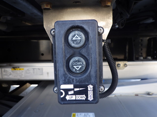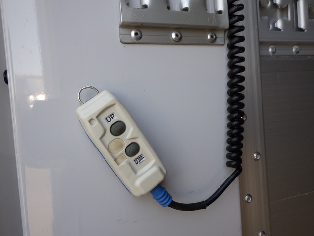 床:木 / 内フック 11対 / ラッシング 2段 格納式パワーゲート(極東 L:157cm W:230cm 荷重:1000kg・型式:CG1002M-B3MRA2・シリアル:24T021085N・ラジコン・箱内リモコン)