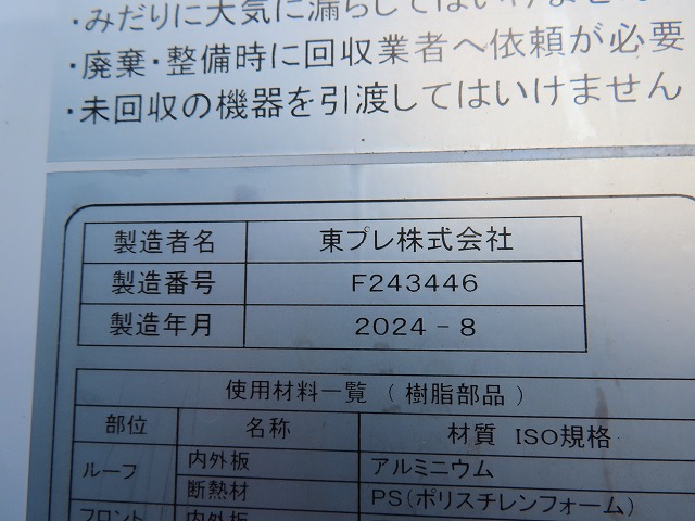ラッシングレール2段、水抜き穴1対 −30℃設定、左サイドスライドドア、