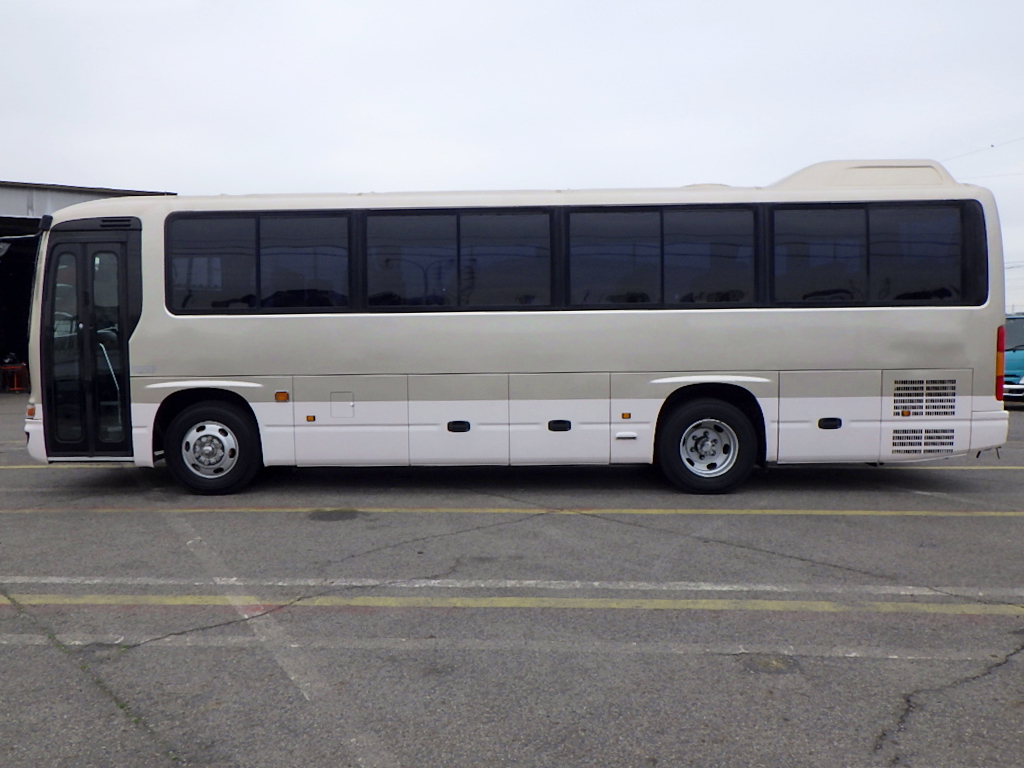 ☆自動折れドア/総輪エアサス/ニーリング ☆貫通トランク×2/モケットリクライニングシート ☆後席モニター/両側天井荷物棚/リアヒーター ☆換気扇/ナビTV/バックモニター/DVDプレーヤー ☆ETC/AT/車両総重量9450kg |