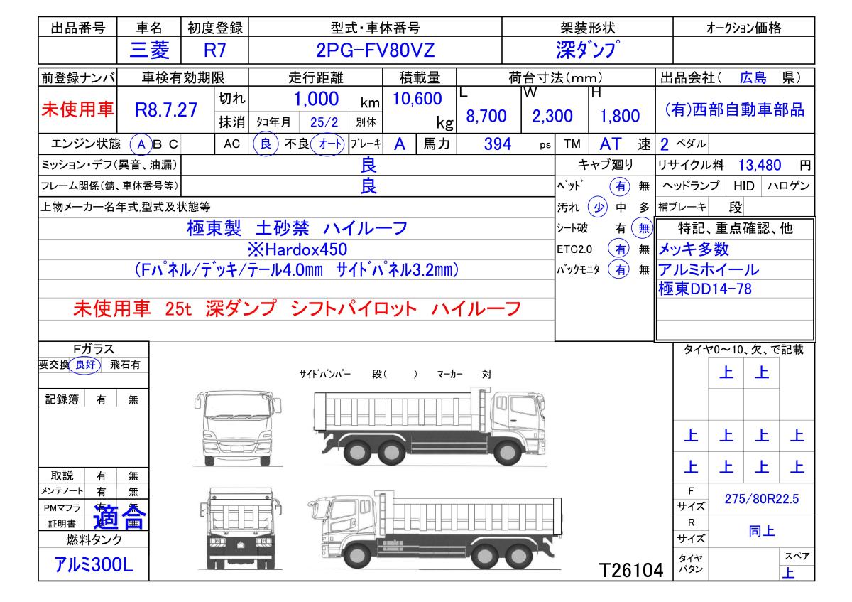 | 形状詳細 | 土砂禁ダンプ | 積載量 | 10,600 kg | ||||||||||||