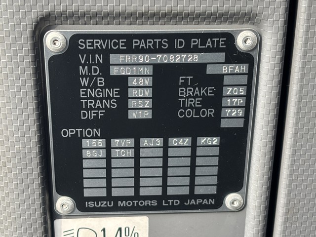 | 型 式 | TKG-FRR90T2 | 車台番号 | FRR90-708**** | ||||||||||||