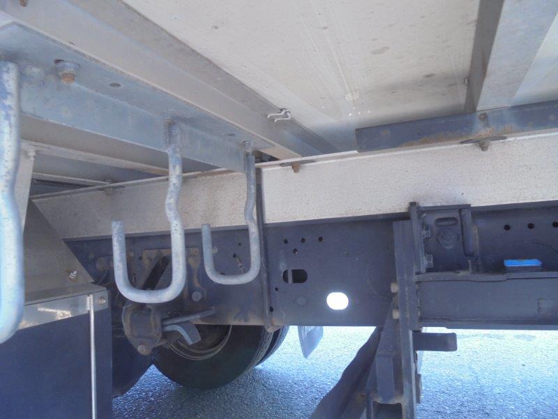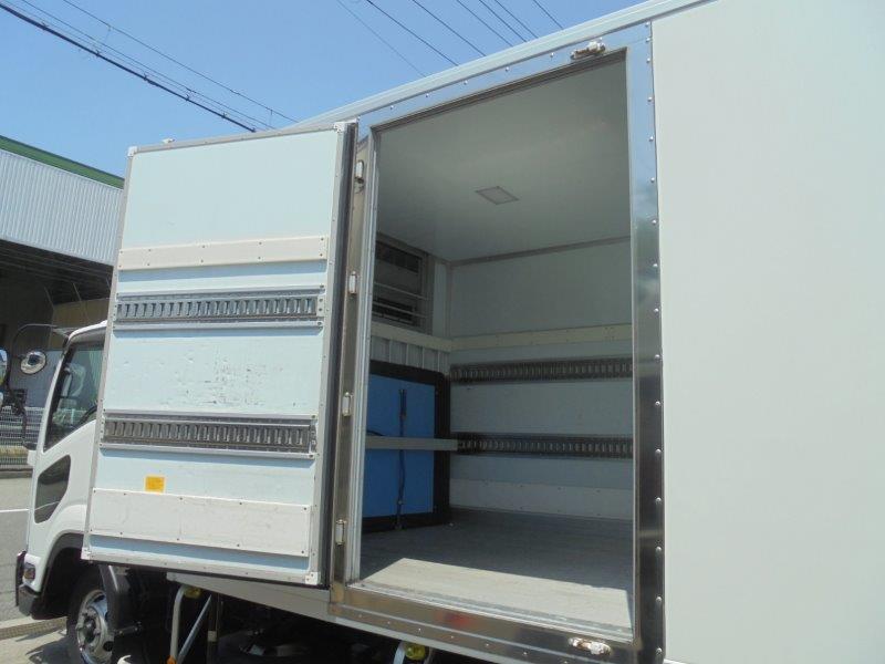 左サイドドア ラッシング2段 床アルミシステムフロア 仕切り板あり 冷凍機:デンソーCG844W -32℃設定 -26.5℃確認(外気14℃/3h) リヤアルミ格納ゲート1000kg(新明和)ラジコンあり
