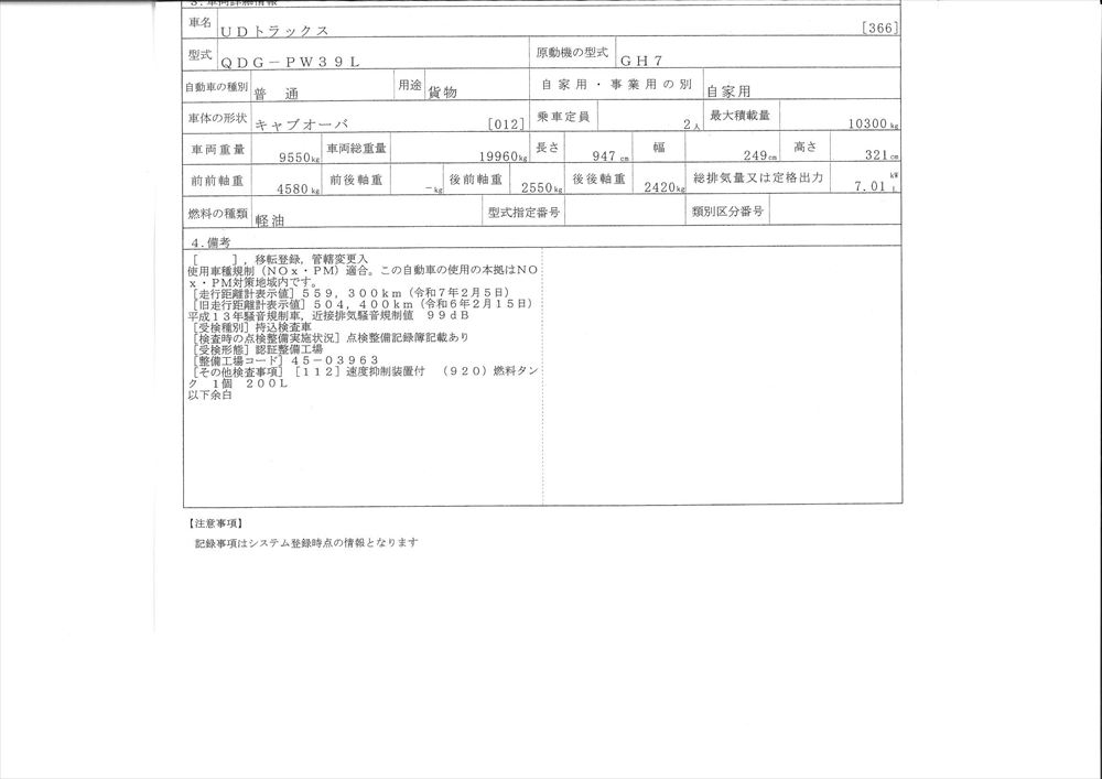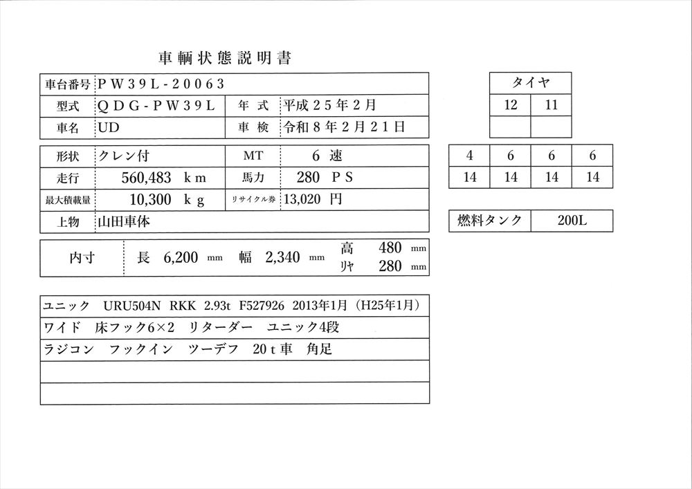 | メーカー | UD | 年 式 | H25/2 | ||||||||||||