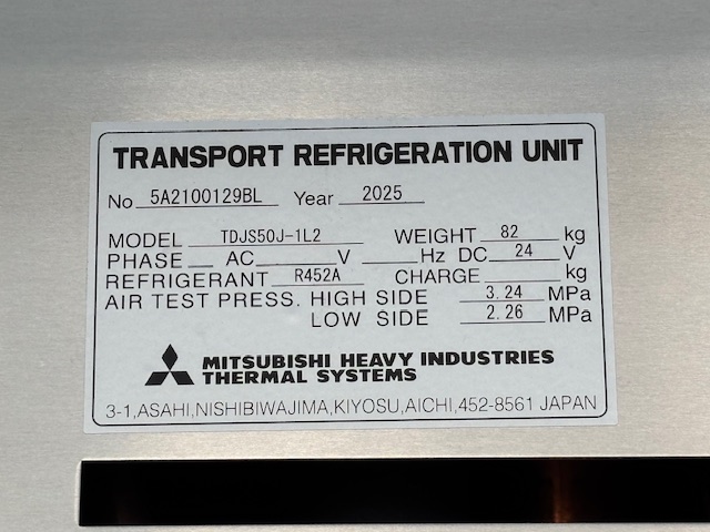 菱重 TDJS50J-1L2 -30℃設定 3時間で-9.5℃確認済(9月測定) 床形状:アルミアンチスリップ S/D付(幅1300mm×幅2170mm) ラッシング2段