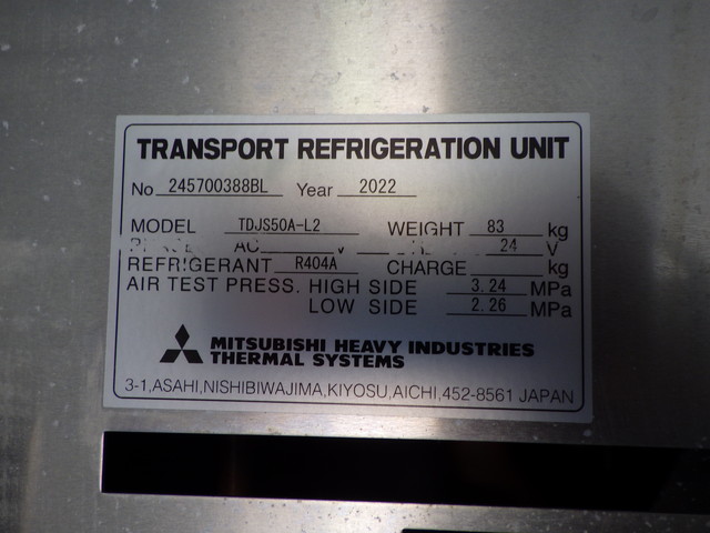 床:アルミ縞板 / ラッシング 2段 冷凍機:三菱(30℃〜-30℃設定・15℃→-6℃ 1時間・1室・直結式) / 格納式パワーゲート(トランテックス L:155cm W:220cm 荷重:1000kg・型式:TRAK10-6495D・ラジコン・箱内リモコン)