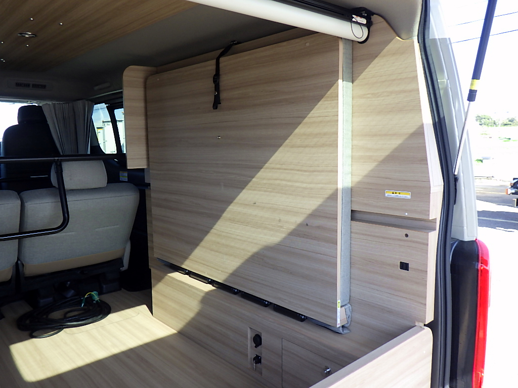 ☆跳ね上げ式ベッドキット/2列目2in1反転シート/ロールスクリーン/ルーフサイド間接照明 ☆左右ウッドブラインド/専用2トーンカラー/MYROOMステッカー/外部電源AC100V ☆前席Hレザーシート(ヒーター付)/左パワースライドドア/LEDヘッドライト&LEDフォグライト ☆ウインカー付ドアミラー/純正メモリーナビTV/アラウンドビューモニター ☆デジタルインナーミラー/ドライブレコーダー/ETC/保証書/車両取説/ナビ取説/インテリキー/禁煙車 ☆800kg/0.8t/0.8トン/車輌総重量3335kg |