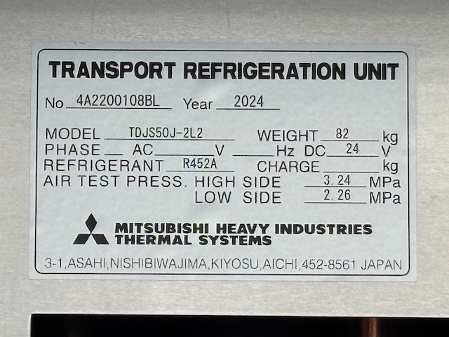 菱重 TDJS50J-2L2 -30℃設定 2時間で-19.4℃確認済(4月測定) スタンバイ付 床形状:アルミアンチスリップ S/D付(幅1300mm×高2170mm) ラッシング2段