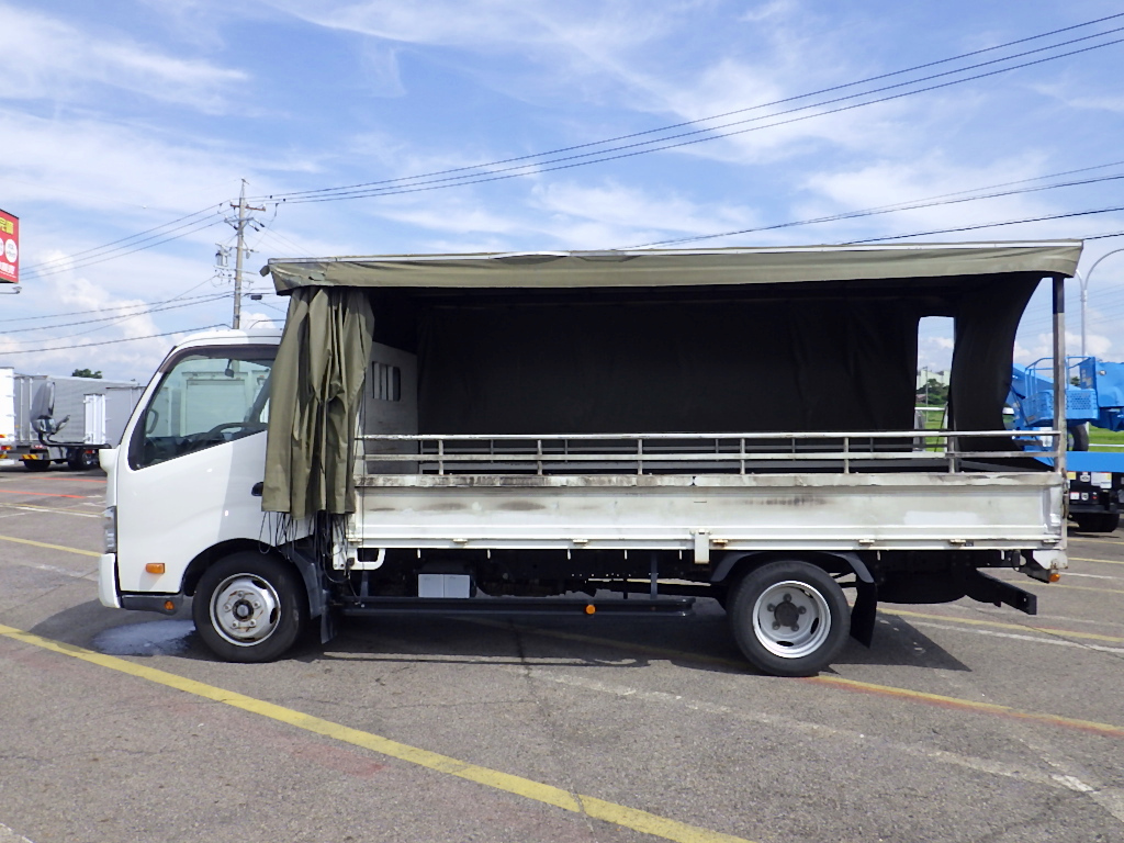 ☆平ボディ☆3面幌カーテン付 床鉄板☆3方開 2トン☆ワイドロング☆全低床☆あおり開閉補助装置☆イクリプスSDナビ/ワンセグTV☆バックカメラ☆左電格ミラー/ETC☆HIDヘッドライト☆136PS☆キーレス☆保証書・取説車内☆床面地上高90cm☆燃料タンク100L☆最大積載量2000kg/2t/2トン☆車両総重量5325kg