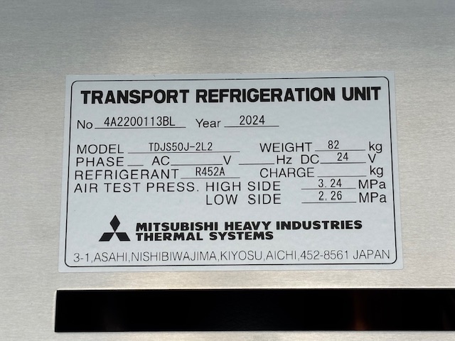 菱重 TDJS50J-2L2 -30℃設定 3時間で-9.5℃確認済(9月測定) スタンバイ付 床形状:アルミキーストン S/D付(幅1310mm×高2130mm) ラッシング2段
