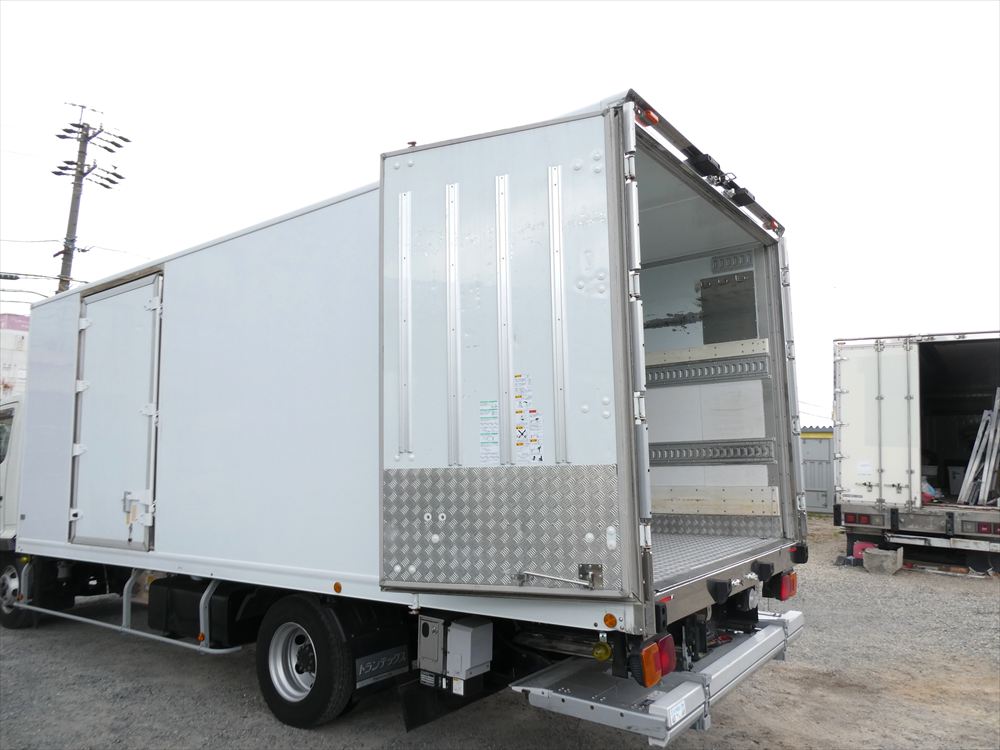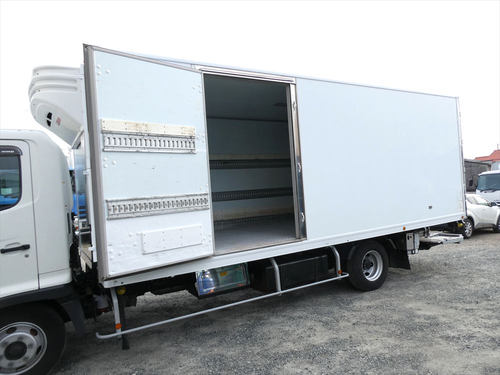 型式 TKG-FC9JKAA 車台番号 FC9JKA-16427 ワイド ボデー内寸 L6.18m W2.26m H2.1m 格納パワゲート 新明和 冷凍機:菱重 TDJS50A-L2 上物箱:トランテックス 床アルミしま板 バックモニタ ETC |
